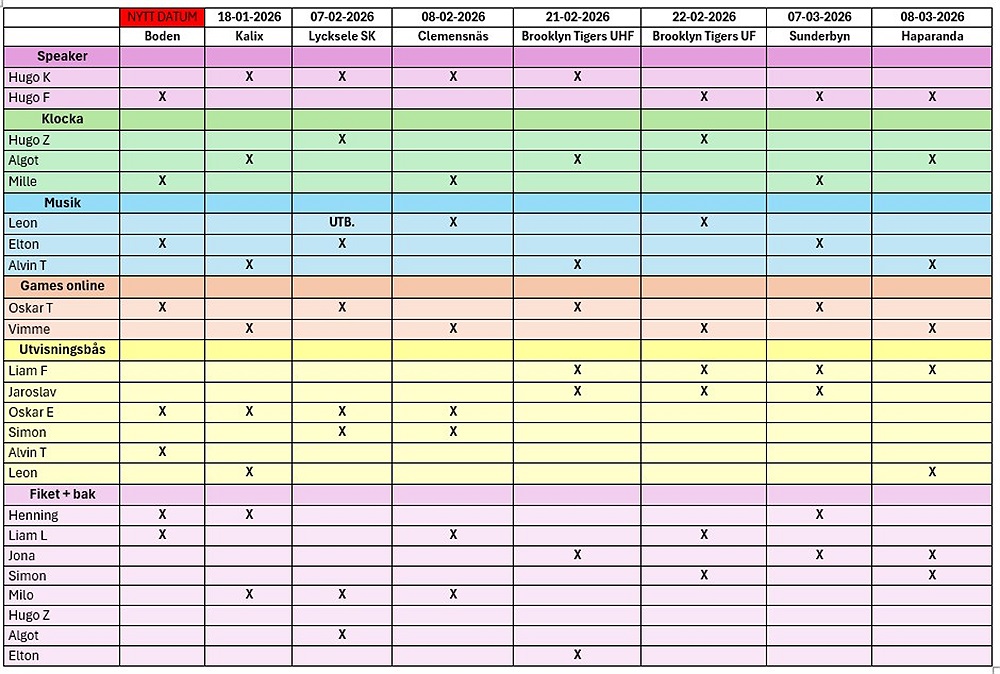 Här kommer arbetspass för hösten 2025. Jag försöker fördela passen jämnt under hela säsongen. Behöver ni byta pass så sköter ni det själva. det är erat eget ansvar att hitta en ersättare.