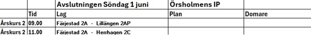 Den 1/6 är det dags för våravslutning/klassfotbollens dag på Örsholmens IP. Vi kommer att spela två matcher och det kommer att finnas massor av aktiviteter på plats (hoppborg, kiosk, tävlingar mm.).