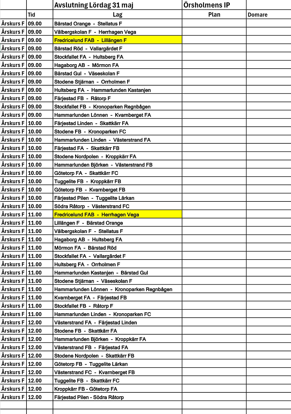 Onsdag 3/9 Kl 17.00 Skutberget 1 Väseskolan F - Fredricelund FAB