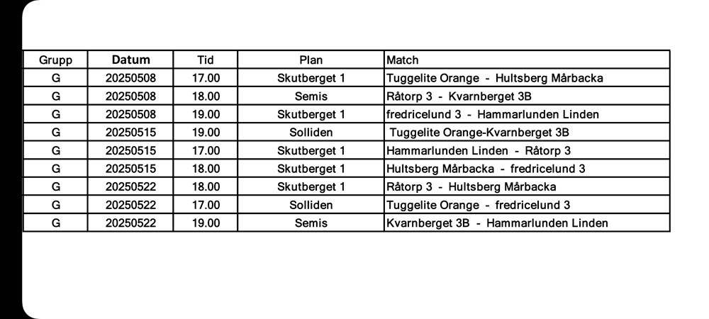 Spelschema Vår 2025