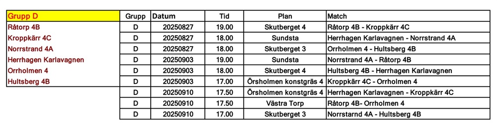 Match 1: 27 aug kl.19 Råtorp mot Kroppkärr 4C på plan Skutberget 4