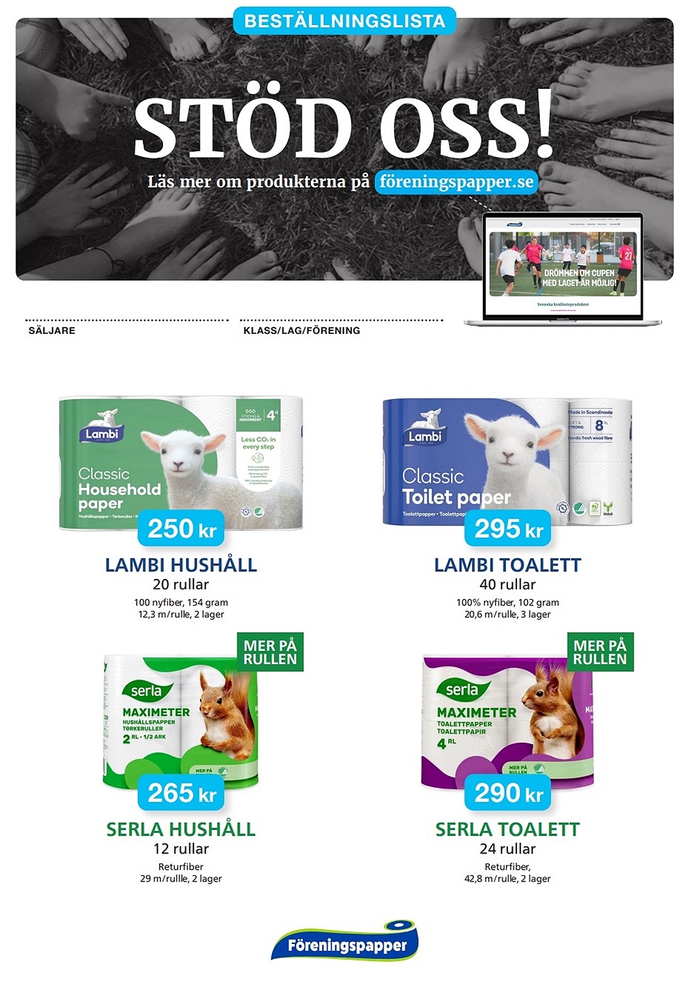 Då var det dags för den årliga föreningsförsäljningen av toa- och hushållspapper! Säljkravet är 10 säckar per familj. Vill man hellre använda friköp så är det 1000kr/familj. Som tidigare år så får vi hjälpas åt i laget. Har någon möjlighet att sälja fler än 10 säckar kan det hjälpa dom som har det svårare. Vi får stämma av med varandra hur det går för alla.