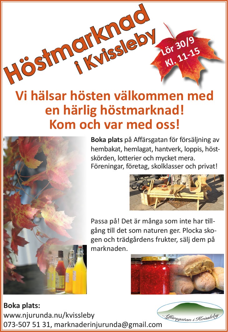Lördagen den 30 september kl. 11.00 - 15.00
