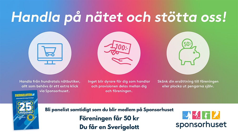 Gå med i Sponsorhuset och börja stötta oss i vardagen när du handlar online hos över 650 välkända nätbutiker. Du får själv pengar tillbaka på dina köp, samtidigt som föreningen får viktiga intäkter.