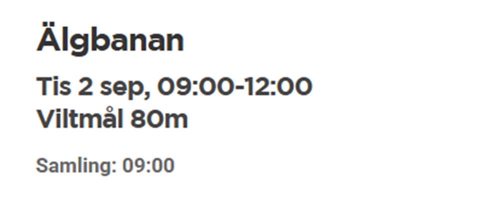 På grund av högt tryck vid Älgbanan har en extra Tisdag skapats 2/9:e mellan kl09-12. Flera tider kommer läggas till så det finns med i kalender och utskick ifrån början nästa år!