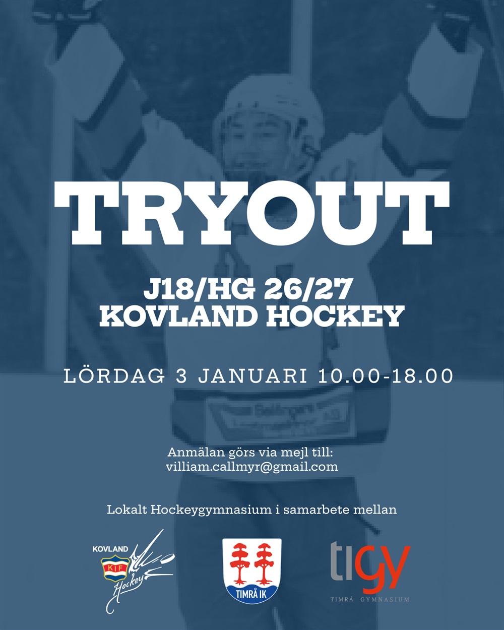 Tryout J18 & Hockeygym 2026/2027 - Lördag 3 Januari 10.00-18.00