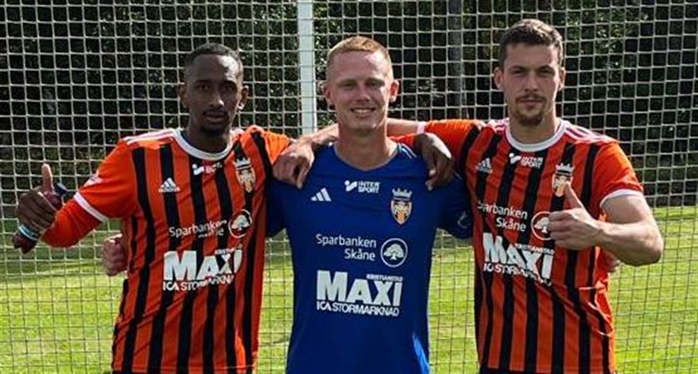 Målskyttarna Omar Dampha och Paolo Lilja flankerar målvakten Otto Larsson Wågert som höll nollan mot Balkan.