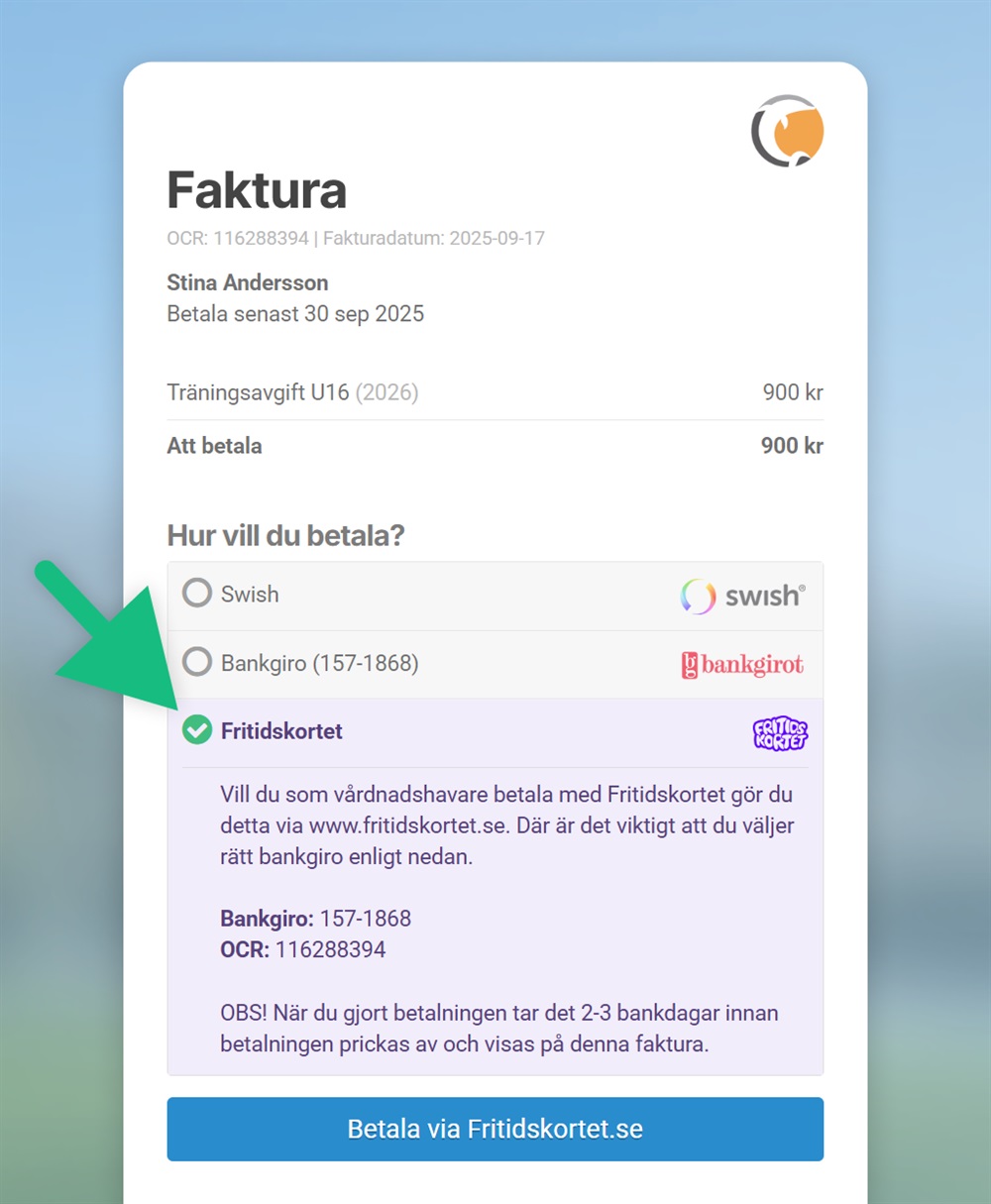 Vi är glada att kunna meddela att från och med nu kan du som förälder använda Fritidskortet för att betala avgifter hos oss – inte bara träningsavgiften, utan även medlemsavgift och andra kostnader kopplade till barnens aktiviteter.