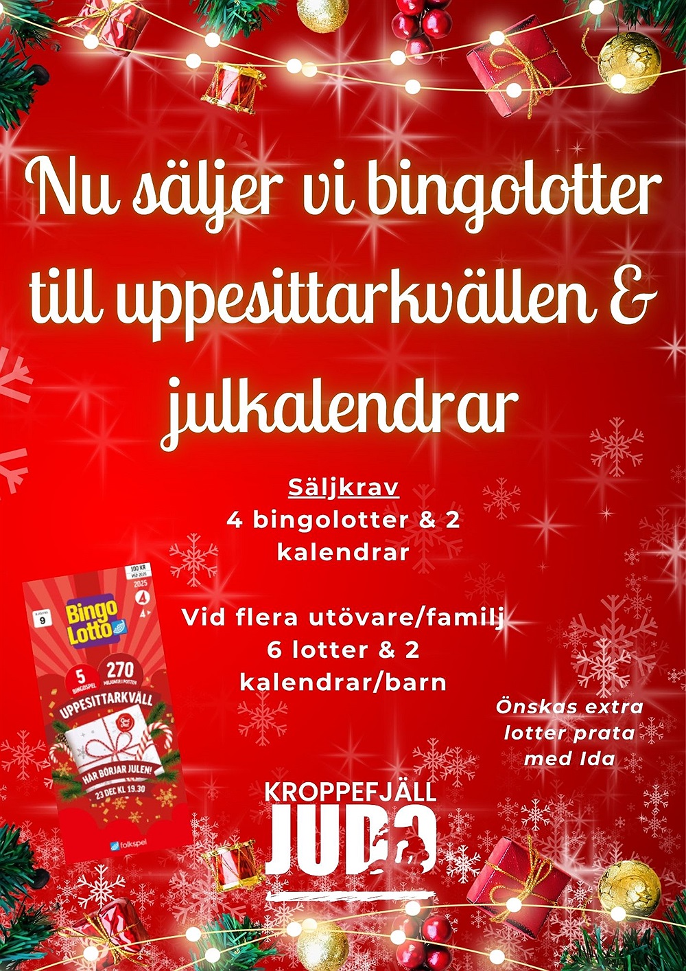 Nu är vi igång med försäljningen av Bingolotter till uppesittarkvällen och julkalendrar 🎄