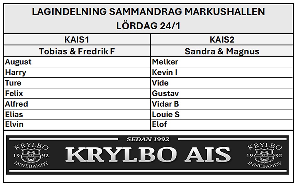 UPPDATERAD Info samt lagindelning sammandrag Markushallen 24/1