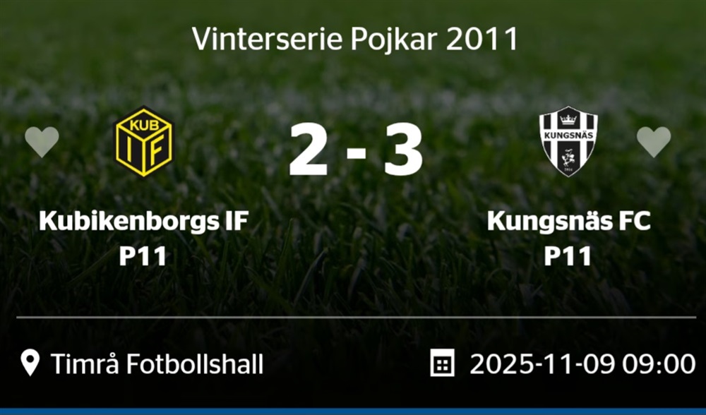 I andra halvlek flyttar vi upp laget och växlar upp - Kuben drar hem laget och på en liten plan blir det trångt och svårspelat. Vi fortsätter föra spelet och har ett skott i ribban innan vi till slut rättvist sätter dit 1-1. Känslan är att vi nu kan börja gå för ett ledningsmål - men då vi står högt skickas en boll i djupled och hastigt och mindre lustigt ligger vi under igen. Kuben tar verkligen bra betalt idag.