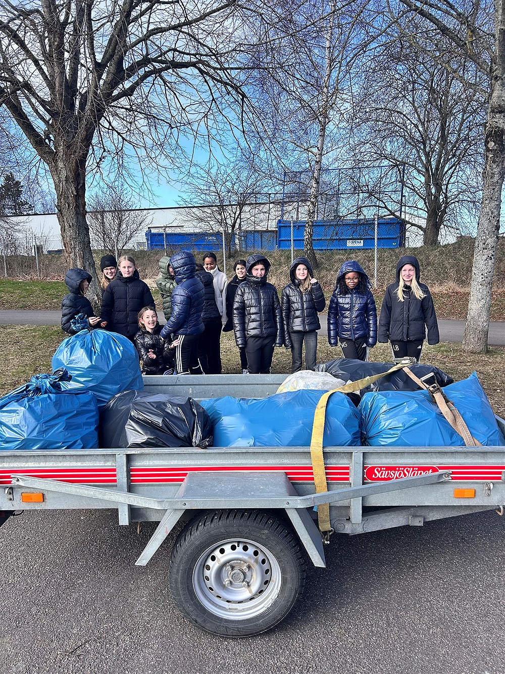 Vi fyllde ett helt släp med pant. Det var ett gäng glada, modiga och trevliga tjejer som kämpade på och samlade pant åt LFK.