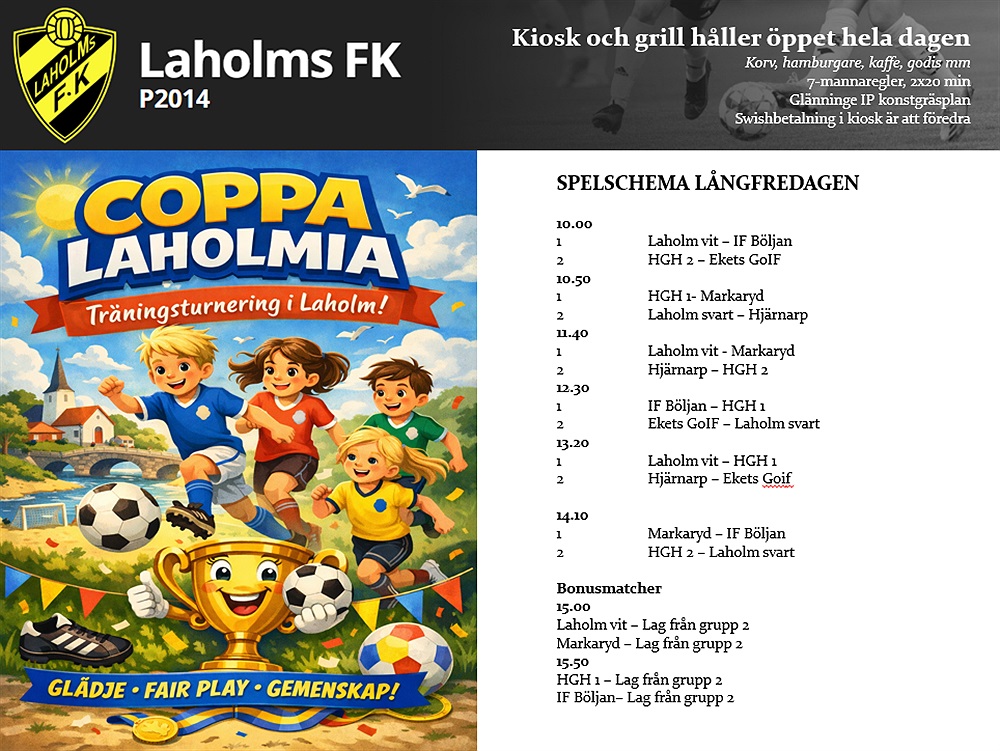På långfredagen är det dags för vår, numera, årliga träningsturnering. Varmt välkomna till Glänninge IP för att stötta våra killar i vårsolen