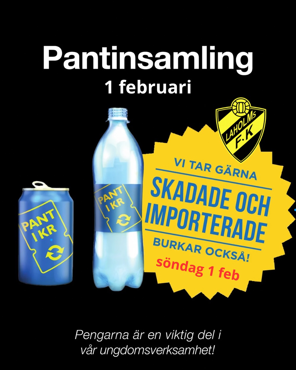 Söndagen den 1 februari kan ni lämna er pant på Glänninge park mellan kl 10.00-12.00.