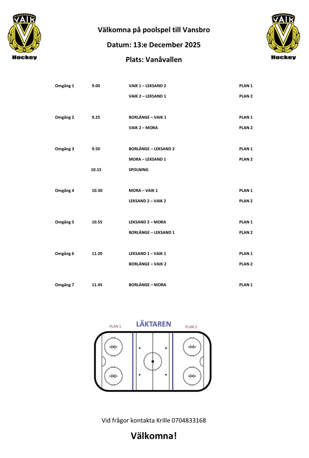 Som ni ser på detta spelschema så börjar poolspelet 09:00. Alltså 20 minuter tidigare än först kommunicerat. Kalendern är uppdaterad.