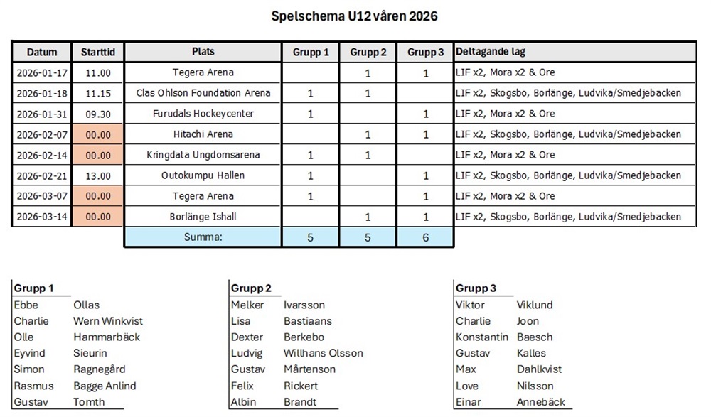 Spelschema och grupper för våren 2026