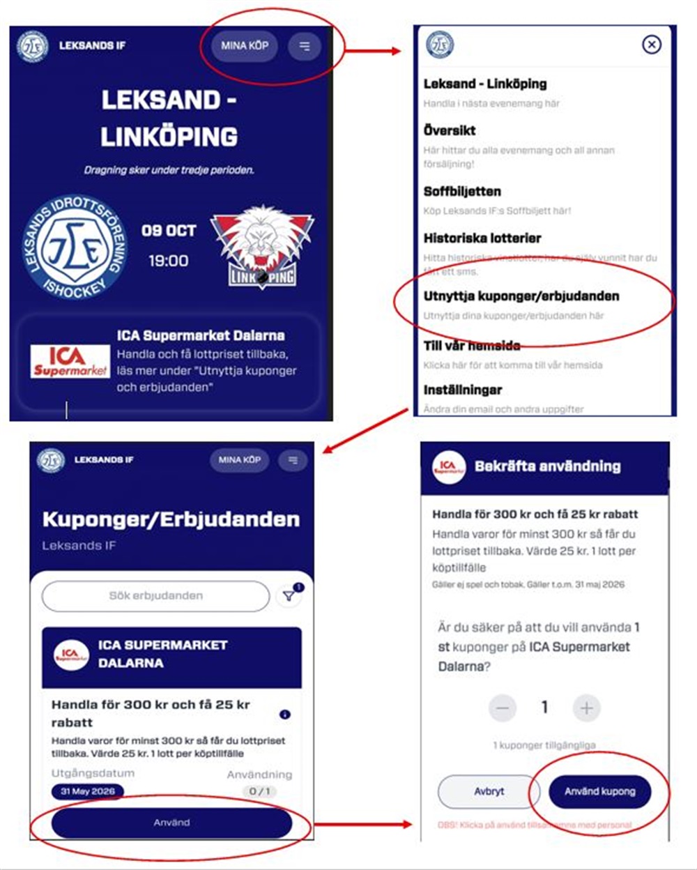- Du får då upp en meny med olika val, klicka på "Utnyttja kuponger/erbjudanden"
