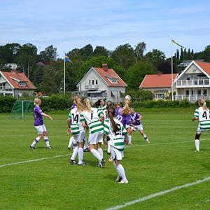 Som vanligt då vi spelar i år, så var vädret riktigt fint. Det var t o m lite för varmt denna söndagseftermiddag den 8 juni på Aspevallen. Som vanligt tog också Lerum kommandot direkt och skapade en hel del chanser, men utan att få in bollen. Efter 20 minuter släppte det dock, då Sara slog en perfekt avvägd chippassning genom mittförsvaret till Ulle som säkert satte 1-0.