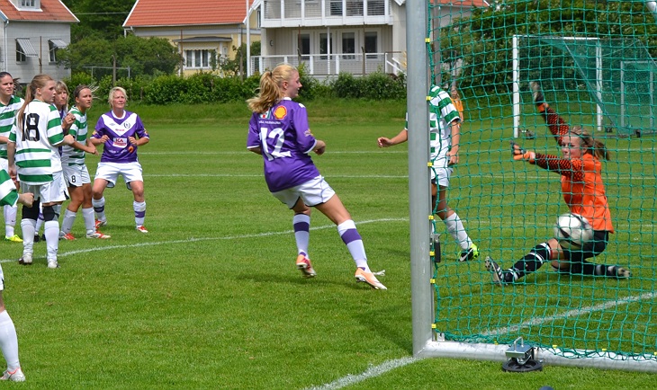 5 minuter senare var det dags igen. Mia slog en av sina patenterade och helt suveräna hörnor, som Ulle knoppade in till 2-0. Ytterligare 5 minuter senare fick Sandra bollen till höger i straffområdet i en tilltrasslad situation, avancerade mot målet och stänkte in sitt första mål i år via närmaste stolpen. 3-0 och målen trillade in i ett behagligt tempo. Någon minut innan pausvilan slog Ulle till igen efter att själv erövrat bollen. 4-0 var ett oerhört snyggt mål, då Ulle iskallt lobbade in bollen över målvakten.