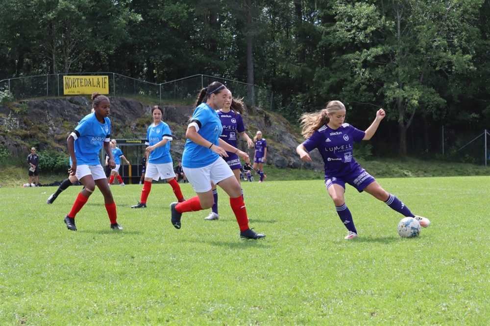 Tjejerna är redan klara för A-slutspel, men det återstår en match kvar och det är mot det franska laget FC Franconville. Redan från första sekund tar Lerum tag i taktpinnen och börjar visa upp det fina spel vi tidigare sett. De jobbar sig metodiskt och successivt upp i banan med fina kombinationer. De har ett lugn i sitt spel som många lag inte har. Laget passar sällan fel, och spelarna tar varje chans de får att göra någonting bra med bollen.