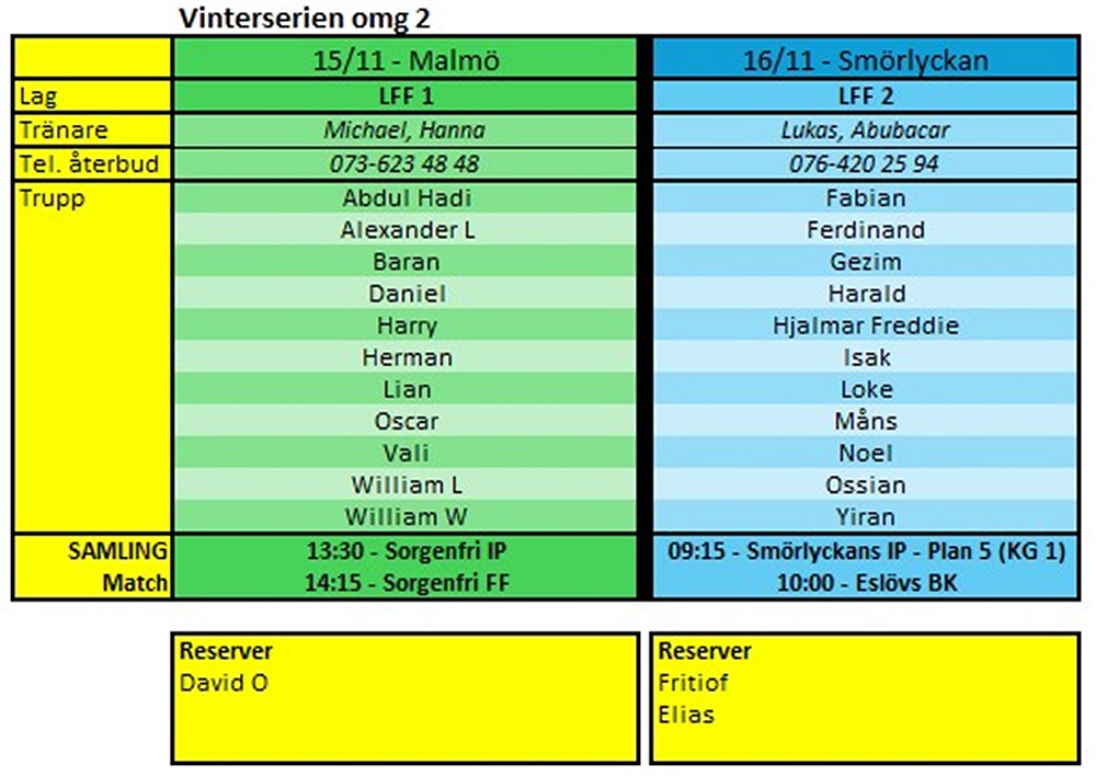 I.o.m. att vi har reserver blir vi glada om avbokningar sker i tid. Lägg mess till telefonnumren för återbud, skriv dem inte i tråden är ni snälla.