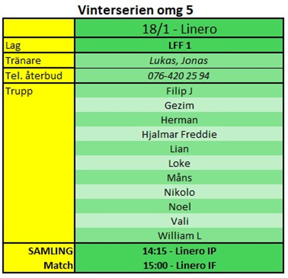 Alla spelarna som tackade ja och som kom på någon av veckans träningar är med.
