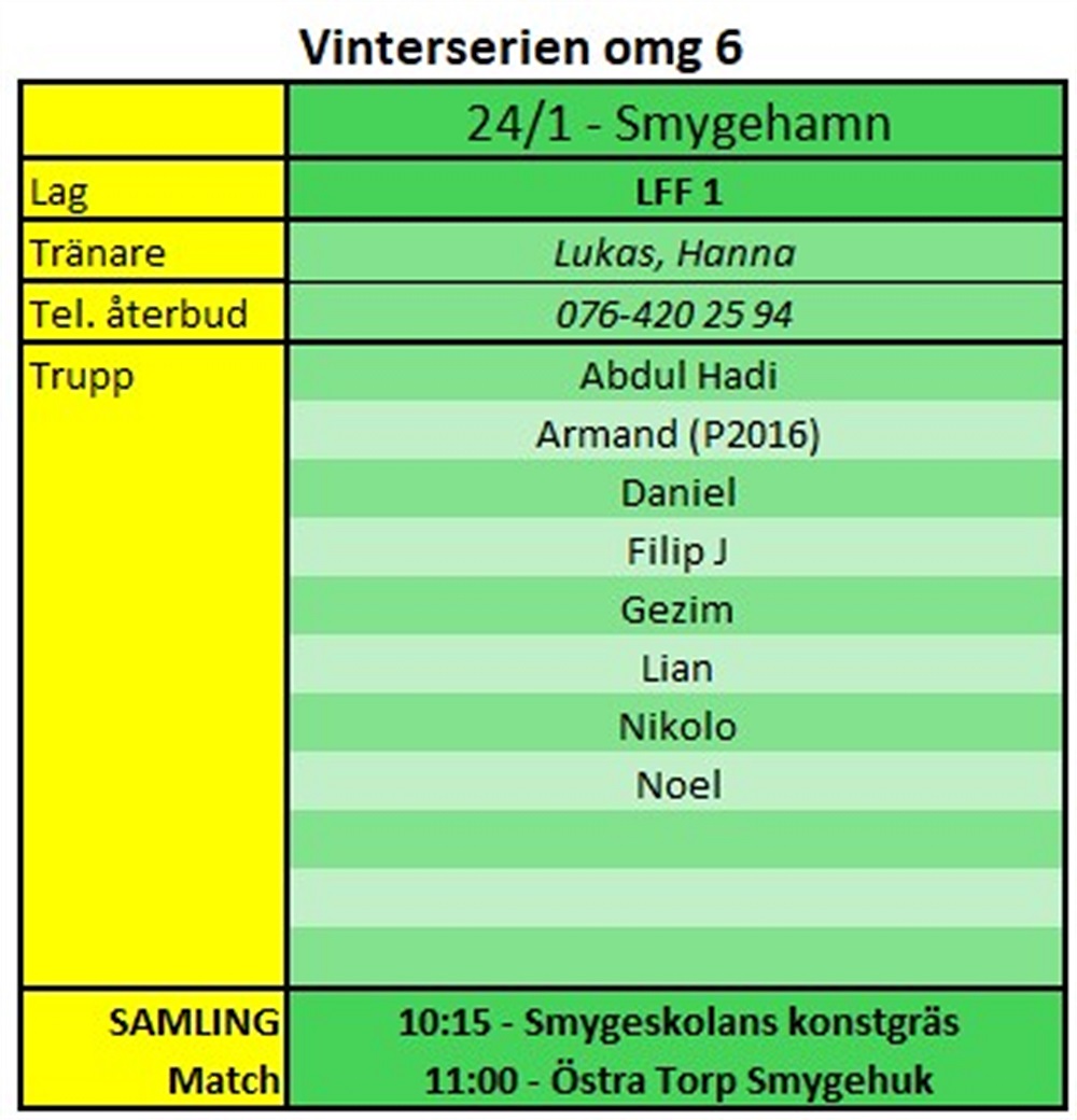 Vi har ju som det ser ut bara en avbytare den här gången. Jätteviktigt då att alla kommer. Någon behöver oftast byta någon gång under en match.