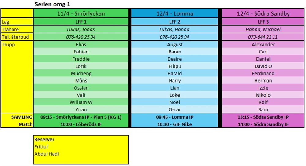 12 spelare kunde bara lördagen. Det är fullt förståeligt att man bara kan en särskild tid, men vill slå ännu ett slag för att i så stor utsträckning som möjligt vara flexibla så att vi inte blir så "styrda" i vår fördelning av spelare mellan lagen.