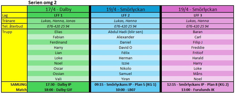 Dalby - tidig kvällsmatch - kortare samlingstid