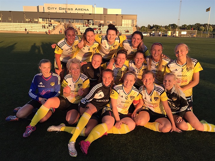 Glada tjejer firar segern mot Boren i onsdagskväll på CGA