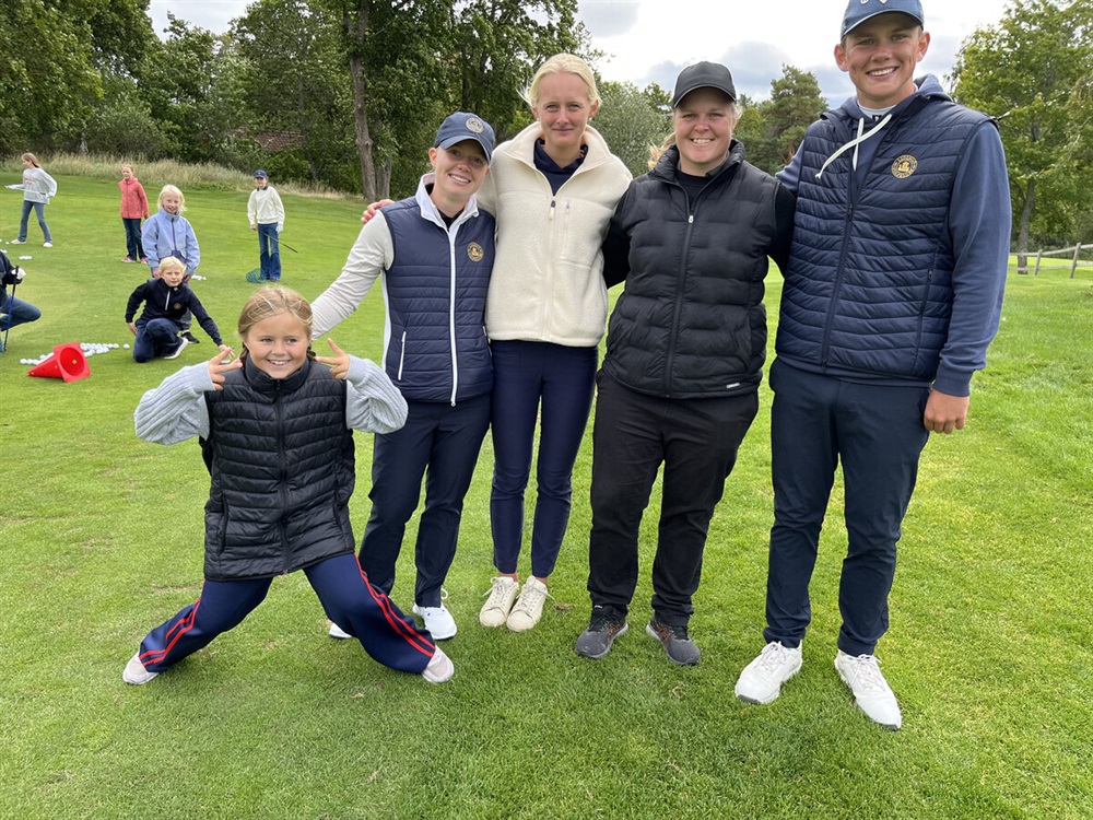 En höjdpunkt under dagen var besök av storspelaren Caroline Hedvall som verkligen bjöd på sig själv och hjälpte till i träningen av tjejerna. Vilken stjärna! Hon passade även på att äta lunch med flera av klubben elitjuniorer och berätta om sina erfarenheter som golfare