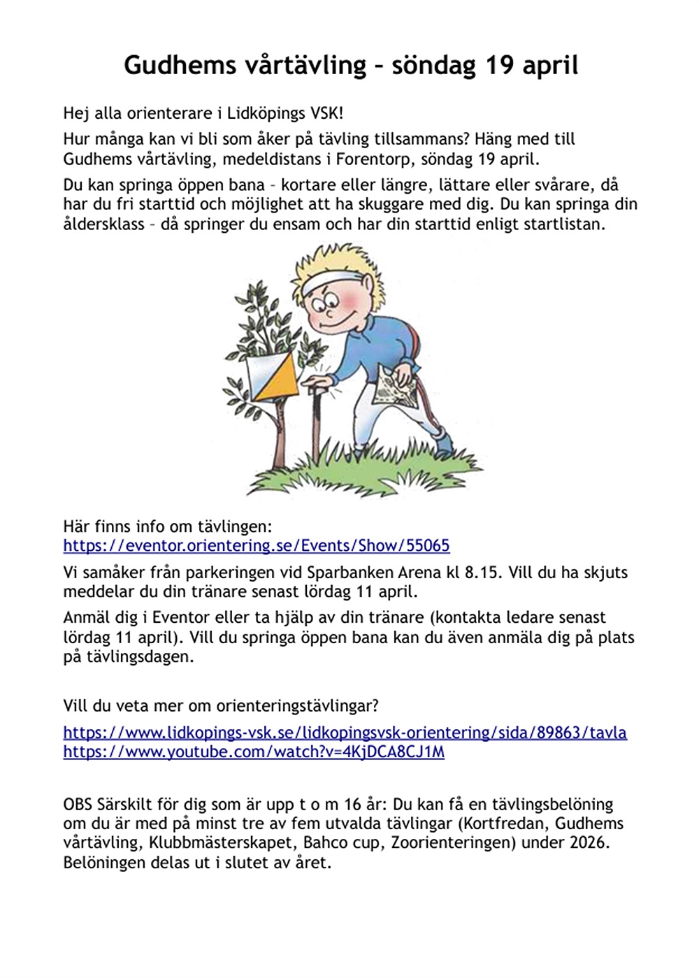 Häng med på tävling! Hoppas på en fin dag i Gudhem - roligt i skogen och många LVSK:are!