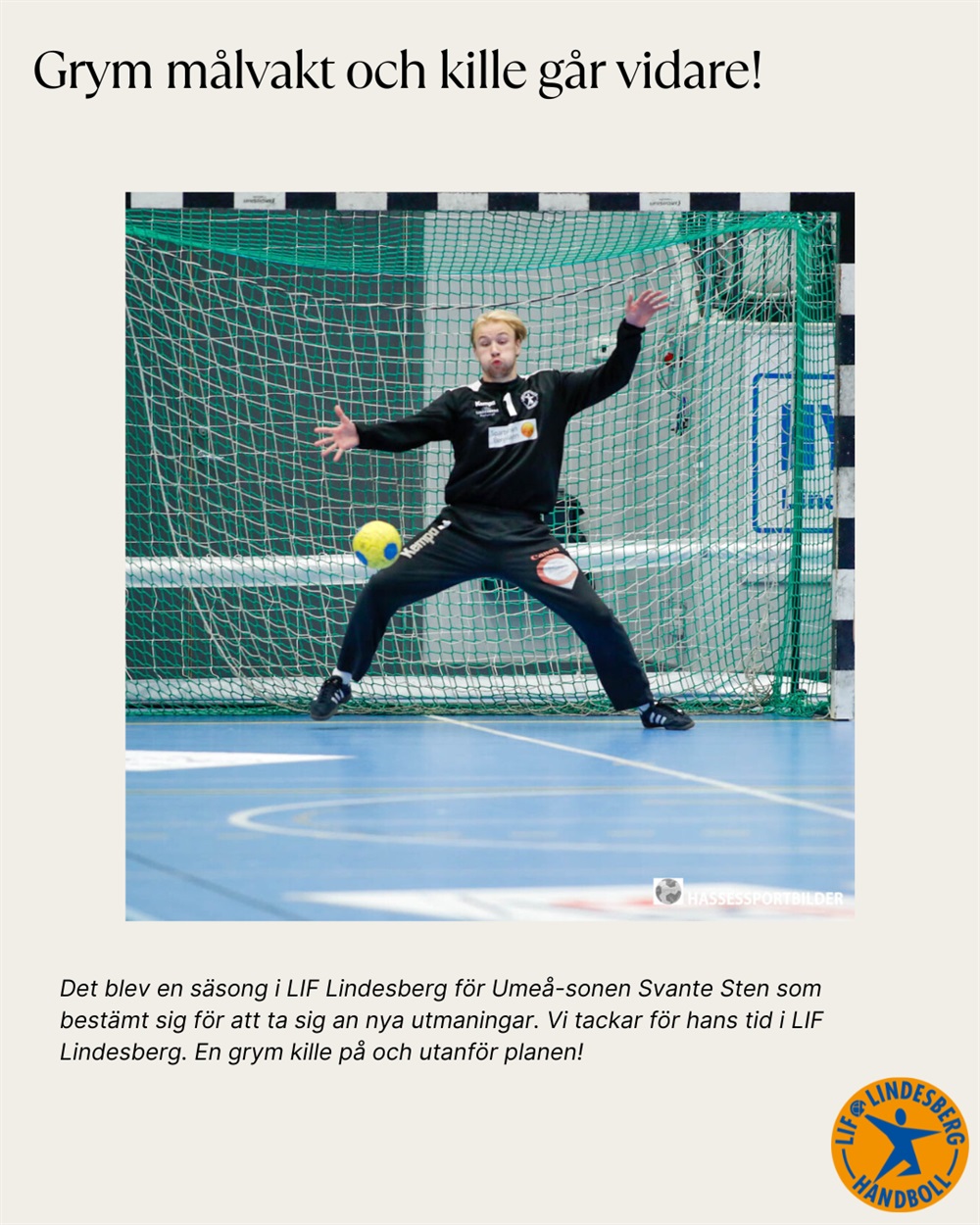 Svantes tid i målet och Lindesberg blev en säsong - men under sin korta tid har han gjort ett fantastiskt intryck som person och bidragit många grymma insatser på planen. En toppenkille som vi önskar ett stort lycka till!