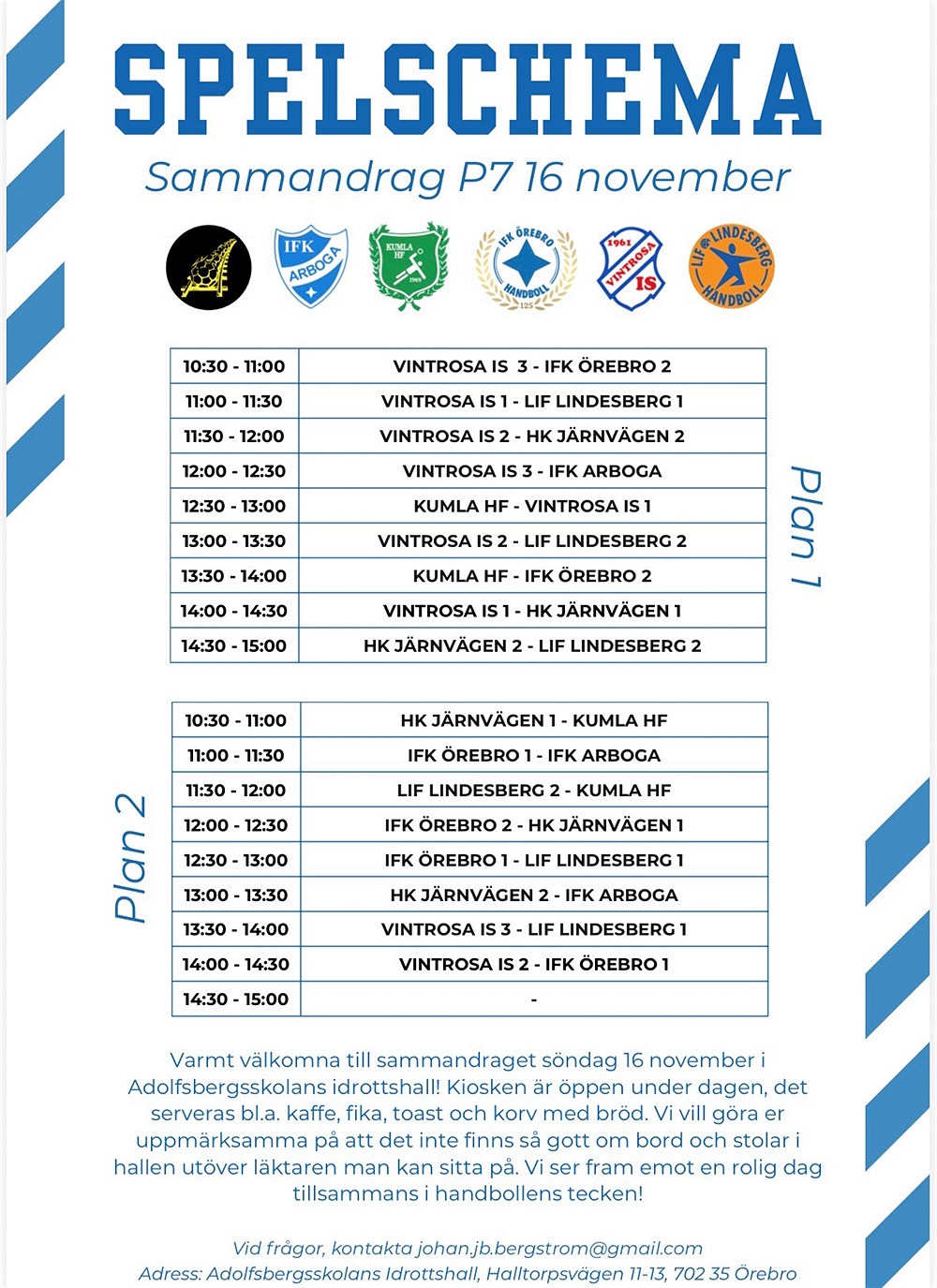 Vi vill även flagga för att vi kan komma att behöva hjälp från er föräldrar, då vårt lag är med och arrangerar poolspelet. Det kommer vara enklare uppgifter som tex. kiosk, städ och plocka fram/undan.