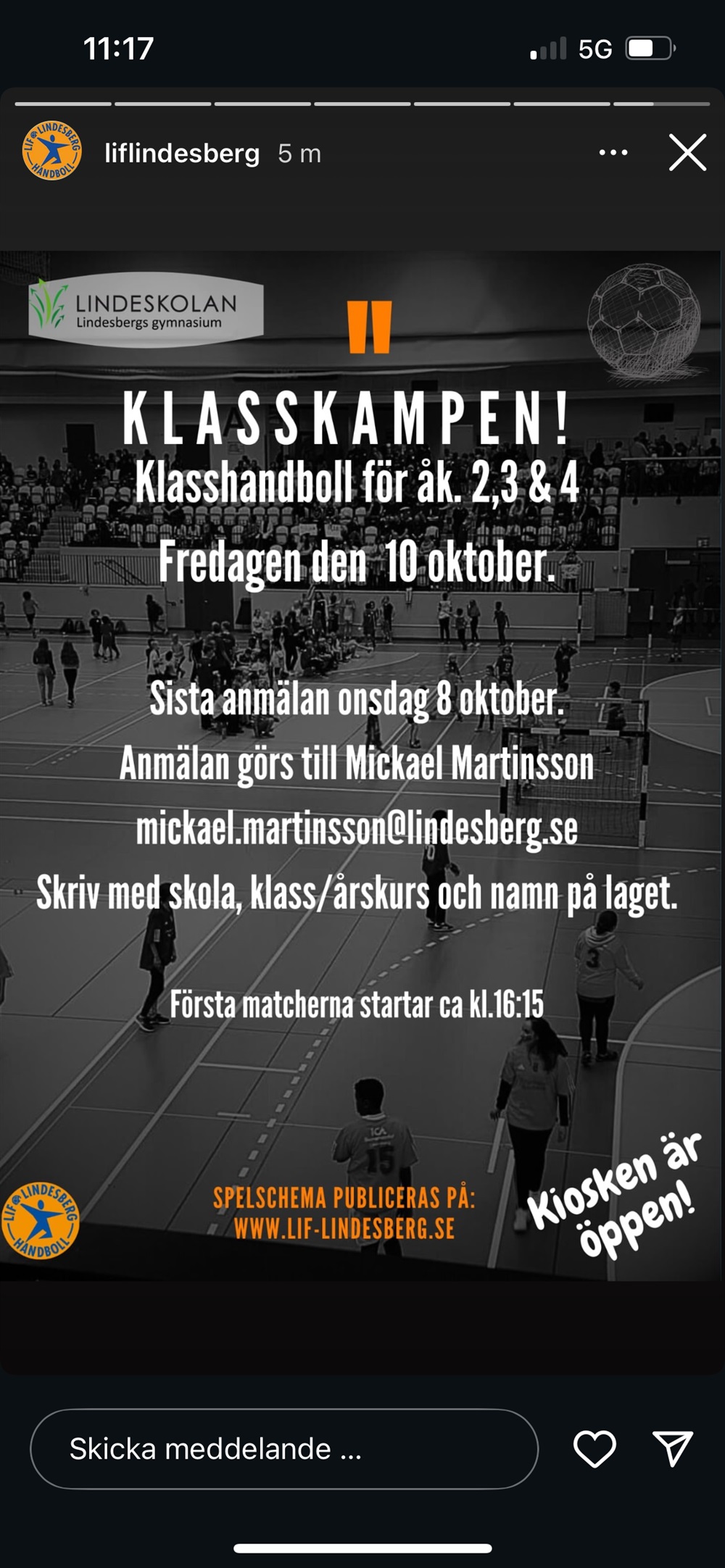 Träningen fredag 10/10 är inställd, då många killar är med på Klasskampen i Lindesberg Arena: Klasskampen 10/10: Grupper & spelschema / LIF Lindesberg