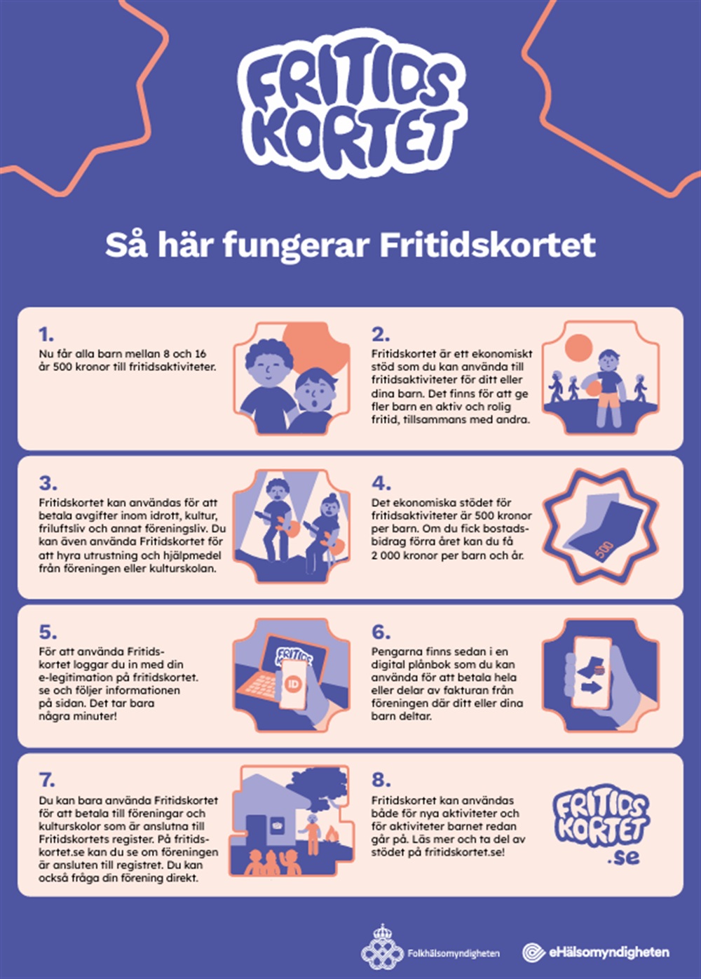 Har du barn som är mellan 8 och 16 år? Då kan du använda Fritidskortet för att betala barnens regelbunda fritidsaktiviteter.