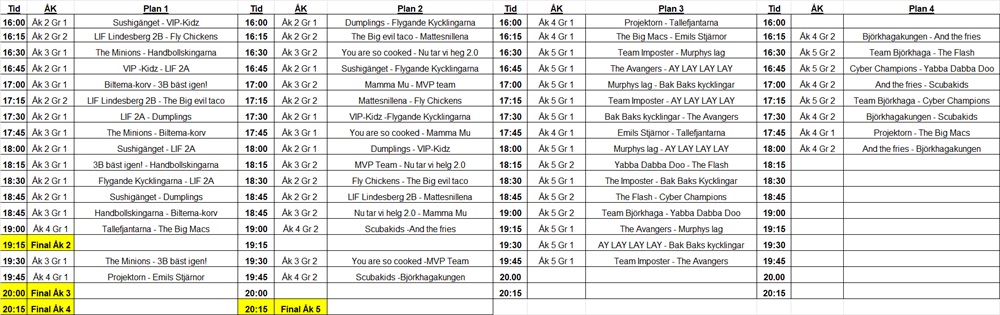 Spelschema för kvällen hittar ni: Här
