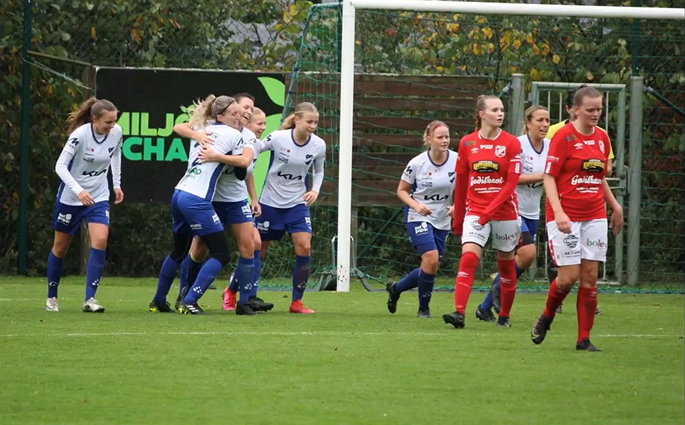 Hanna Heurlin har precis kvitterat till 2-2 och glädjen är stor i TFF. ( Bild: Erik Werner)
