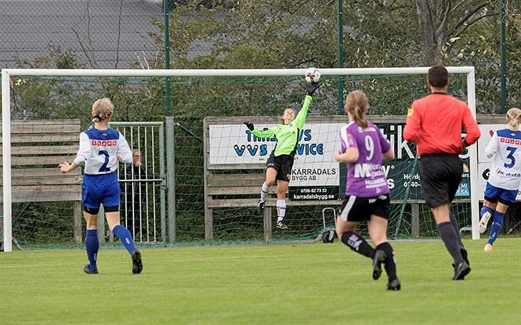 Trots ett gott försök lyckas inte Julia Andersson förhindra 0-2 målet
