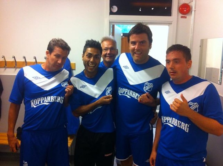 * Elias Melén hade lovat att kyssa klubbmärket IFK Fjärås vid mål men han slapp detta!