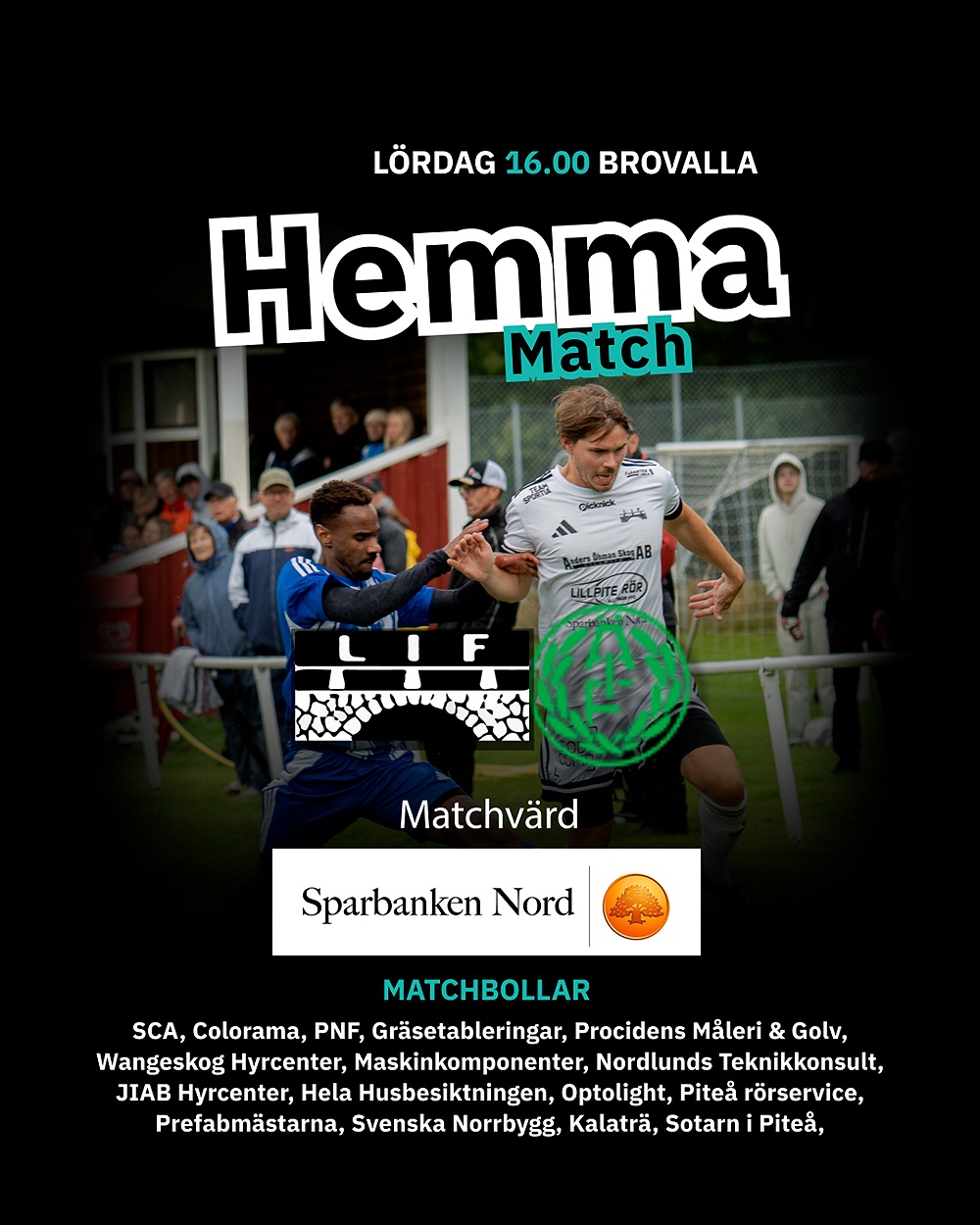 Vår matchvärd sparbanken Nord kommer vara på plats och dela ut en check i halvlek på 130 000 kr som går till Lillpite äventyrspark.