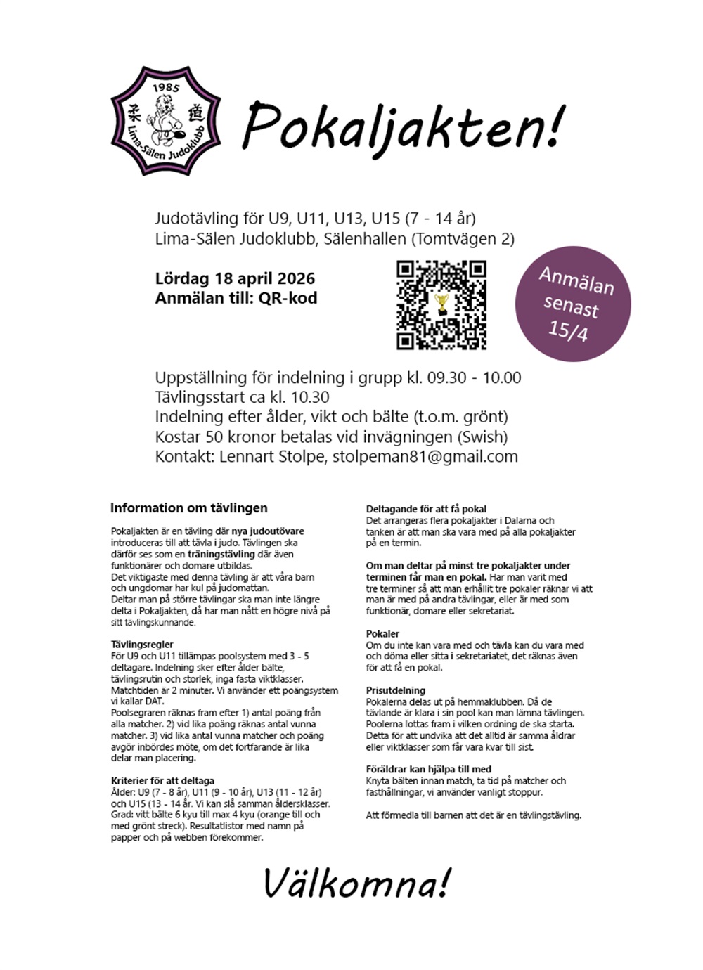 Hej! Här kommer inbjudan till Pokaljakten i Sälen den 18 april 2026.