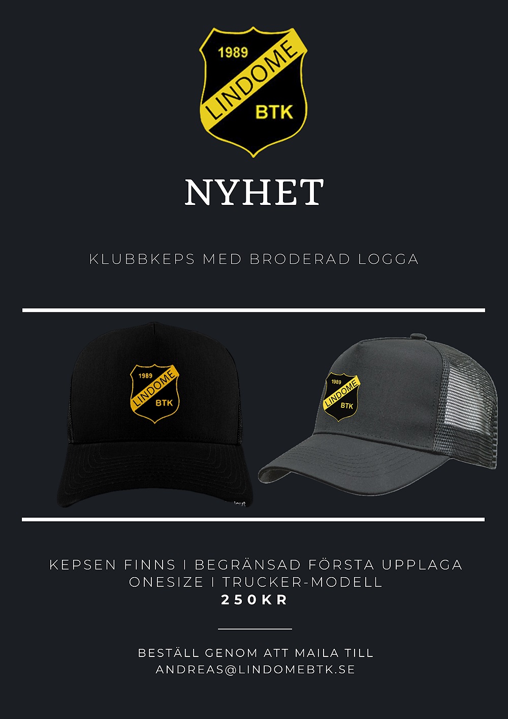 Vår senaste produkt i resan till att stärka vårt varumärke och närvaron som Lindomes grymmaste klubb är den givna KEPSEN!!