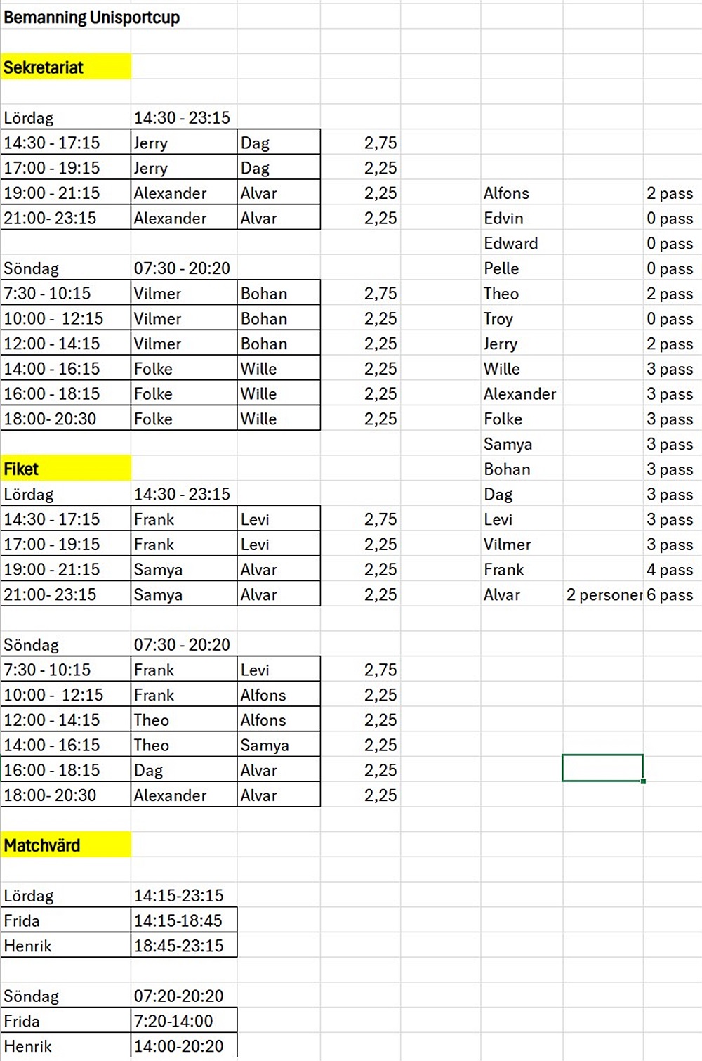 Efter ett resonemang inom ledargruppen så kom vi fram till att tränarna som lägger ner mest tid av alla inte ska behöva hjälpa till med bemanningen av fik och sekretariat under helgens cup. De ska fokusera på laget i första hand och möjligen stötta upp där det behövs. Sedan hjälper vi varandra och byta sinsemellan om tiderna inte skulle passa.