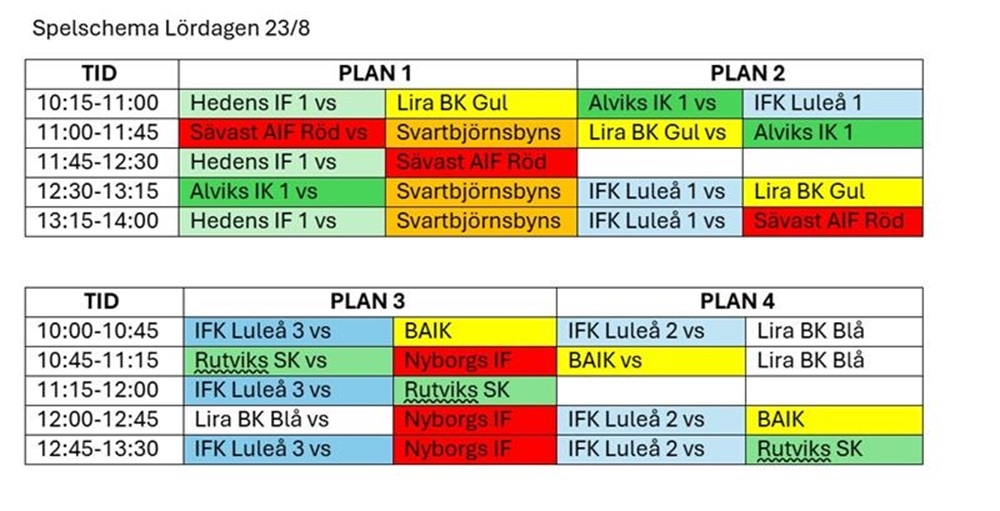 10:00: IFK Luleå 2 - Lira BK Blå (plan 4)