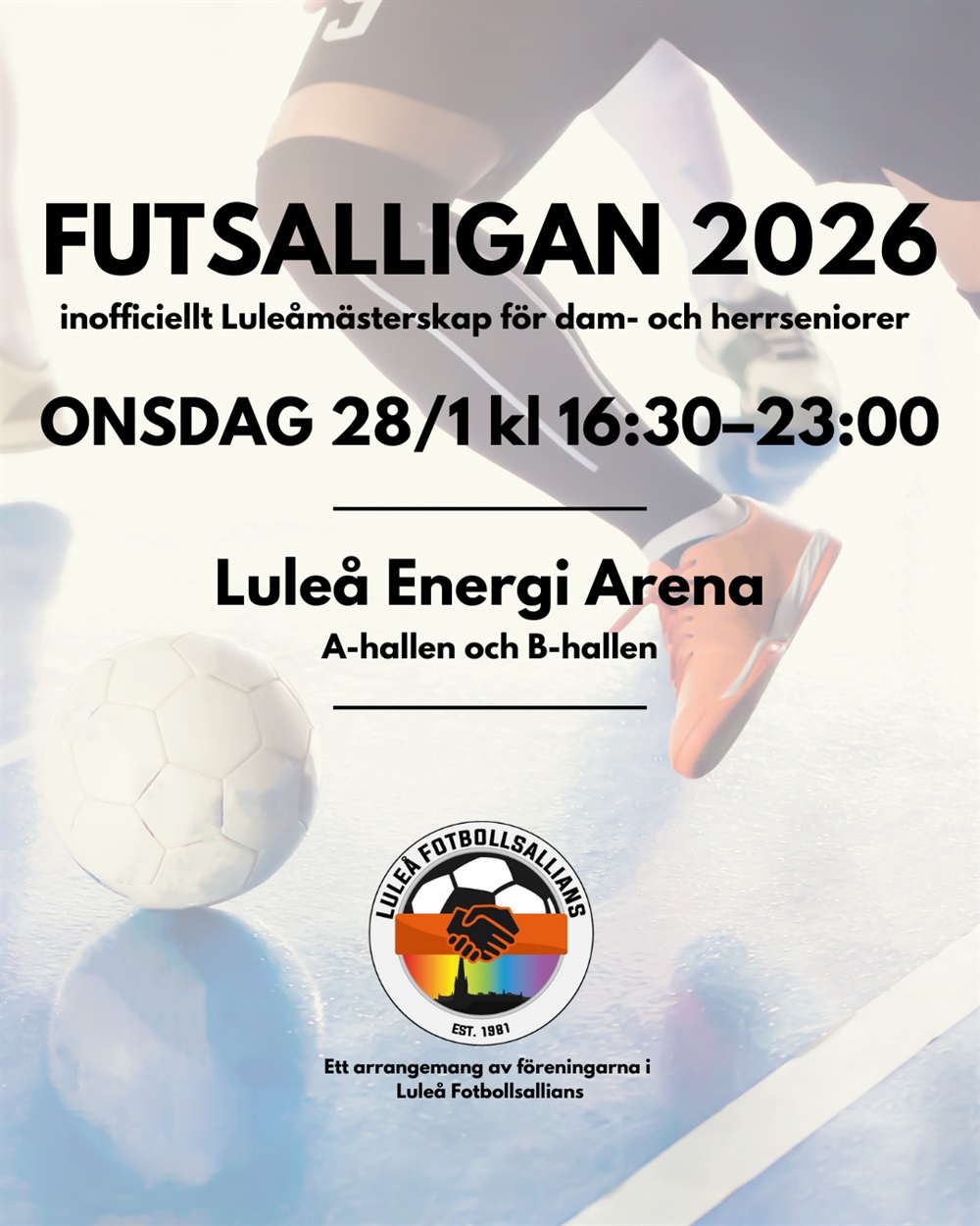 Imorgon onsdag den 28/1 kl 1630-2300 är det inofficiella Luleåmästerskapen i futsal som går av stapeln på Luleå Energi Arena.