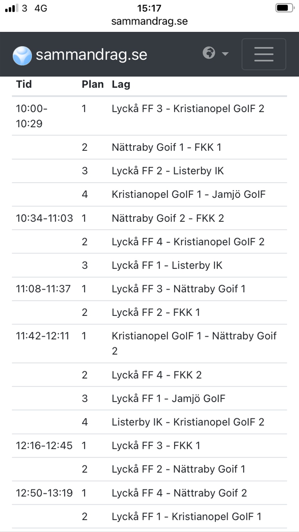 Här kommer spelschemat för i morgon.
