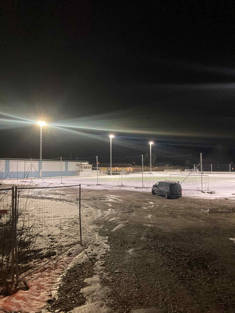 Nu är belysningen i drift på vår 11-manna plan, denna investering hamnar på c:a 1 miljon kronor. Arbetet är utfört av lokala entreprenörerna AJ Industriservice AB som utförde montering av belysningen och grävningen av Sälls Åkeri. Detta projekt är genomfört i egen regi av förenings funktionärer.