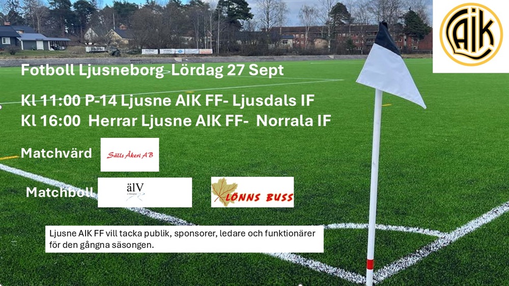 På Lördag avslutats säsongen för vårt P-14 lag som tar emot Ljusdals IF kl 11:00.