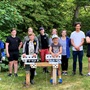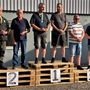 Från vänster, bakre rad: Silver Helén Lennartsson, Guld Patrik Andreasson och Brons Lars Lennartsson. Främre rad: Guld Maya Smit och Brons Emma Göransson (silvermedaljör saknas).